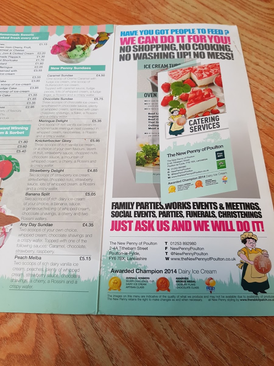 Introducing the menu at The New Penny Of Poulton, located in the heart of Poulton-le-Fylde, is a delightful experience that caters to various palates. Renowned for its tempting ice creams, freshly made on-site, the diverse menu extends beyond sweet treats to include hearty breakfasts and light lunches.